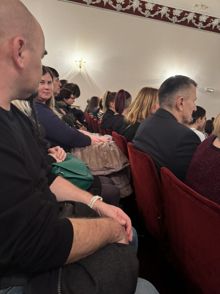U subotu 23. studenog 2024.g., u sklopu projekta “Živjeti život kao san – samostalno, aktivno, neovisno II”, na kojem smo partneri Udruzi slijepih Varaždinske županije, članovi kulturno-književnog kluba naše Udruge posjetili su Gradsko kazalište Požega u kojem se odigrala nova hit predstava GK Požega pod nazivom „Kokoš“. Putovanje je to koje nas vodi kroz šarm i razočarenja bračnog, kazališnog i ljubavnog života. Mjesto radnje je kazališni stan u kojem su zidovi tanki i krhki kao i životi likova. Tri glumice, jedan poluglumac i redatelj uđu na scenu i čarolija “kazališta u kazalištu” započinje.